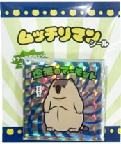 ムッチリマンシールのキラキラホログラム缶バッジです。カバンなどにつけると存在感とシュール感がバツグン!